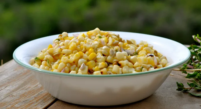 - To serve, add the seeds to bowl of corn with half of the dressing. Toss. Taste and add more dressing as necessary. Add the chopped oregano and serve.