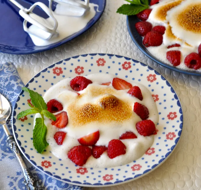 I decided to keep it simple and just serve the meringue over sweet, summer berries garnished with some fresh mint.